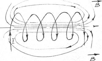 Рис.2. Распределение линий магнитной индукции поля соленоида