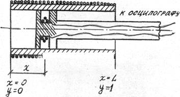 Рис. 3. Схема взаимного расположения соленоида и пробной катушки. Длина соленоида L. Катушка расположена на расстоянии х от одного из концов соленоида