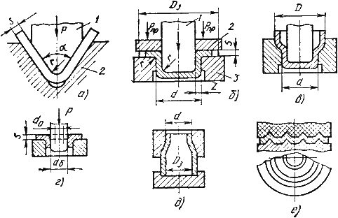 Рис. 16.1. Формообразующие операции листовой штамповки