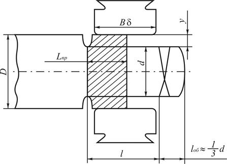 При назначении напусков рекомендуется проверить: - выполняемость всех уступов (полуразность диаметров двух смежных участков - параметр " у " на рис.2) начиная с наибольшего диаметра. Уступы выполняют, если их высоты не менее 4 или 5 мм соответственно для 2-х диапазонов диаметров меньшего из притыкаемых участков: до 100 мм и свыше 100 до 180 мм. В противном случае, обычно, уступ аннулируют назначением напуска на " низший" участок; - возможность изготовления концевых ступеней, исходя из того, что длина участка присекаемого для протяжки ступени, должна быть не менее