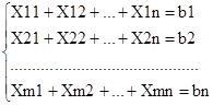 Второй раздел курсовой работы посвящён особенностям постановки и решения некоторой разновидности общей задачи линейного программирования, а именно, транспортной задаче (ТЗЛП). Постановка и модель ТЗЛП представлена ниже: Пусть имеется m пунктов отправления: A1, A2, …Am, в которых сосредоточены запасы некоторых однородных грузов (товаров) в количестве a1, a2, …, am. Имеется n пунктов назначения: B1, B2, …, Bn, имеющих заявки на b1, b2, …, bn единиц грузов. Предполагается, что сумма всех заявок равна сумме всех запасов:
