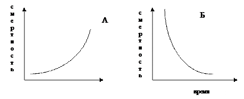 Выберите один верный ответ. 1. Вид -- это: 1) совокупность особей, сходных между собой по внешнему и внутреннему строению; 2) совокупность особей, отличающихся между собой по внешнему и внутреннему строению; 3) совокупность особей, сходных между собой по внешнему строению 4) совокупность особей, сходных между собой по внутреннему строению. 2. Сколько видов растений перечислено? Берёзовый трутовик, веллингтония (или гигантская секвойя), ромашка аптечная, коралловый полип, берёза белая, пихта белая, бледная поганка. 1) 7; 2) 5; 3) 6; 4) 4. 3. Абиотическими факторами окружающей среды являются: 1) свет, влажность, воздух; 2) свет, влажность, воздух, почва, температура; 3) свет, влажность, воздух, почва, почвенные бактерии; 4) свет, влажность, воздух, почва, почвенные бактерии, температура. 4. Найдите неверное утверждение: 1) при фотосинтезе потребляется кислород, выделяется углекислый газ; 2) при фотосинтезе крахмал образуется из воды и углекислого газа; 3) главным участником фотосинтеза являются хлоропласты; 4) растения питаются крахмалом, который образуется при фотосин- тезе. 5. Ядовитыми грибами являются: 1) жёлчный гриб и боровик; 2) мухомор и осенний опёнок; 3) свинушка тонкая и строчок; 4) все указанные 6. Вегетативное размножение корневыми отпрысками характерно для: 1) смородины; 2) огурцов; 3) земляники; 4) малины. 7. Кит относится к: а) позвоночным, б) рыбам, в) беспозвоночным, г) млекопитающим, д) хладнокровным, е) теплокровным. 1) а, б, в; 2) а, г, е; 3) б, г, д; 4) а, б, е. 8. Найдите ошибку в утверждении: 1) лиственный лес (дуб, берёза, граб, ольха); 2) смешанный лес (клён, липа, граб, осина); 3) хвойный лес (сосна, ель); 4) лиственный лес (берёза, клён, рябина). 9. Заповедная территория, предназначенная для постоянной или вре- менной охраны 1-2 видов организмов, называется: 1) заповедником; 2) заказником; 3) национальным парком; 4) зоопарком или ботаническим садом. 10. Что не входит в состав животной клетки: 1) ядро; 2) цитоплазма; 3) цитоплазматическая мембрана; 4) хлоропласт. 11. Какая кривая (А или Б) на графиках отражает высокий уровень смертности в популяции со временем?