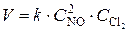 Пример 4.1. Как изменится скорость реакции каждой из реакций: 2NO (г) + Cl2 (г) = 2NOCl (г); (1); СаО (к) + СО2 (г) = СаСО3 (к), (2), если в каждой системе увеличить давление в 3 раза? Решение. Реакция (1) гомогенная и, согласно закону действия масс, начальная скорость реакции равна Увеличение давления в каждой из систем в 3 раза приведет к уменьшению объма системы в 3 раза и увеличению концентрации каждого из реагирующих газообразных веществ в 3 раза. При новых концетрациях скорости реакций рассчитываются по формулам: