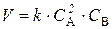 Сравнивая выражения для скоростей V и V', находим, что скорость реакции (1) возрастает в 27 раз, а реакции (2) – в 3 раза. Пример 4.2. Реакция между веществами А и В выражается уравнением 2А + В = D. Начальные концентрации составляют (моль/л): СА = 5, СВ = 3, 5. Константа скорости равна 0, 4. Вычислить скорость реакции в начальный момент и в тот момент, когда в реакционной смеси останется 60 % вещества А. Решение. По закону действия масс Следовательно, V 2 = 0, 4× 32× 2, 5 = 9. Пример 4.3. Через некоторое время после начала реакции 2NO + O2 = 2NO2 концентрации веществ составляли (моль/л): Решение. Исходные концентрации NO и O2 находим на основе уравнения реакции, согласно которому на образование 2 моль NO2 расходуется 2 моль NO. По условию задачи образовалось 0, 216 моль NO2, на что израсходовалось 0, 216 моль NO. Значит, исходная концентрация NO равна