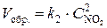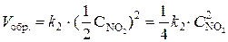 При уменьшении объема в 3 раза концентрация каждого из реагирующих веществ увеличится в 3 раза. После увеличения концентрации скорость прямой реакции стала т. е. возросла в 27 раз; а скорость обратной – Пример 6.4. В какую сторону сместится химическое равновесие реакции А + В Решение. При повышении температуры на 30° скорость прямой реакции возрастет в Пример 6.5. Как изменятся скорости прямой и обратной реакции, если в системе 2NO (г) + О2 (г) Решение. До уменьшения давления выражения для скорости прямой и обратной реакции имели вид При уменьшении давления в 2 раза концентрации каждого из реагирующих веществ уменьшаются в 2 раза, так как общий объем системы увеличивается в 2 раза. Тогда