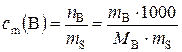 в). Молярную концентрацию эквивалентов рассчитываем по формуле г). Моляльная концентрация вещества В или моляльность(с m(B)) – отношение количества растворенного вещества к массе растворителя: