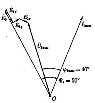 Р е ш е н и е. 1. Уравнение напряжений явнополюсного синхронного генератора (пренебречь активным падением напряжения в фазной обмотке статора)