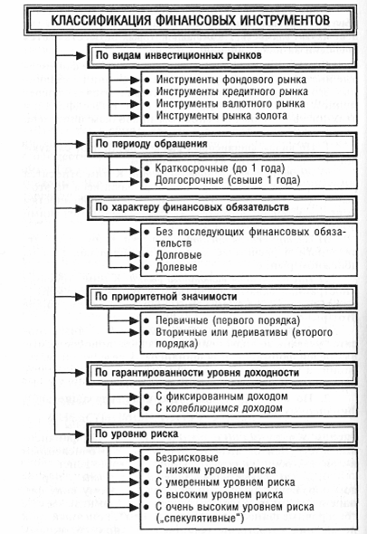 Рис. 8. Классификация финансовых инструментов инвестиционного рынка по основным признакам