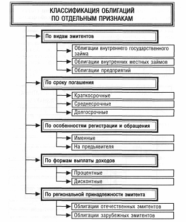 Рис. 10. Классификация облигаций, обращающихся на фондовом рынке, по отдельным признакам