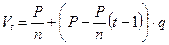 где Р – стоимость объекта или сумма долга, n – срок кредита, t – год, за который начисляется процент. 2) Основной долг выплачивается равными суммами, сложный процент начисляется на ежегодную сумму погашения долга. Сумма векселя в этом случае будет рассчитываться по формуле: