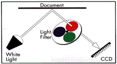 3. Сканеры с интерфейсом PCMCIA встречаются редко. Для владельцев ноутбуков предпочтительнее использовать сканеры с интерфейсом SCSI, подключая их посредством SCSI-адаптера в конструктиве PCMCIA, или в крайнем случае сканеры с LPT-интерфейсом. 4. Интерфейс SCSI является стандартом для подключения высококачественных и высокопроизводительных устройств, обеспечивает межплатформенную совместимость сканера и его малую зависимость от смены операционной системы. К SCSI-сканерам обычно прилагается SCSI-плата на шине ISA, хотя такой сканер можно подключать и к полнофункциональным SCSI-контроллерам на шине PCI (рекомендуются платы производства Adaptec, хотя устройства от Symbios Logic, BusLogic и других производителей также показывают неплохую совместимость). Большинство 30- и 36-разрядных сканеров с разрешением 600 dpi и выше выпускаются с этим интерфейсом. 5. Интерфейс USB - это новый интерфейс для подключения сканеров, активно рекомендуемый спецификациями PC98 и PC99, однако пропускная способность USB недостаточно велика для подключения высокопроизводительных сканеров. Качество драйвера Все современные сканеры обмениваются данными с прикладными программами под Windows 95/98 и Windows NT при помощи программного интерфейса TWAIN, однако предоставляемый драйвером набор функций может быть разным, его обязательно следует уточнить при выборе сканера. Среди них наиболее важны: – возможность предварительного просмотра изображения с выбором области сканирования и количества цветов; – возможность регулировки яркости, контраста, и нелинейной цветовой коррекции (обычно задаваемой в виде кривых); – возможность подавления муара при сканировании изображений с печатным растром; – возможность простейших преобразований изображения (инверсия, поворот и т. п.); – возможность сетевого сканирования; – возможность режимов автоматической коррекции контраста и цветопередачи; – возможность работы сканера (в сочетании с принтером) в режиме копира; – возможности по цветокалибровке как сканера, так и всей системы; – возможности по пакетному сканированию; – возможности тонкой настройки фильтров и параметров цветокоррекции. Количество и качество прилагаемого к сканеру ПО Традиционно в комплекте со сканерами поставляются ПО обработки изображений (Adobe PhotoDeluxe или Photoshop LE, ULead Photo Impact и др.) и программа оптического распознавания текста (OCR - Optical Character Recognition). В комплект ПО обычно входят две таких программы: англоязычная (Xerox TextBridge или Caere OmniPage Pro) и предназначенная для распознавания русских текстов программа OCR отечественной разработки, обычно - одна из версий FineReader производства ABBY Software. Классификация, разновидности, интерфейсы Планшетные сканеры в свою очередь классифицируются на однопроходные или трехпроходные. Раньше для цветного сканирования приходилось использовать трехпроходную технологию То есть первый проход с красным фильтром для получения красной составляющей, второй - для зеленой составляющей и третий - для синей. Такой метод имеет два существенных недостатка: малая скорость работы и проблема объединения трех отдельных сканов в один, с вытекающим отсюда несовмещением цветов. Решением стало создания True Color CCD, позволяющих воспринимать все три цветовые составляющие цветного изображения за один проход. Схема для однопроходного сканера True Color CCD является стандартом на данный момент и в мире у