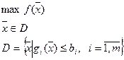 где Задача (1–2) относится к классу экстремальных задач. Если область допустимых решений D совпадает с пространством вещественных чисел Rn, то есть отсутствуют ограничения (2), то данная экстремальная задача является классической задачей оптимизации. · Линейное программирование. Задача линейного программирования – это задача математического программирования (1–2), в которой целевая функция и функции ограничений линейные. Для таких задач разработаны точные методы решений. · Транспортные задачи – задачи линейного программирования специального вида, имеющие более эффективные методы решений. · Задачи о назначениях – задачи о распределении работы между исполнителями с целью достижения максимальной эффективности. · Задачи нелинейного программирования – задачи математического программирования, в которых хотя бы одна из функций нелинейна. В общем случае эти задачи не имеют точных аналитических методов решений. Основные методы их решения – приближенные. · Задачи выпуклого программирования – задачи нелинейного программирования, имеющие вогнутую (Ç) функцию цели и выпуклую (È) область допустимых значений. Это гарантирует одноэкстремальность задачи и позволяет сформулировать признак оптимальности решения. · Задачи квадратичного программирования – задачи выпуклого программирования, имеющие квадратичную целевую функцию с линейными ограничениями. · Задачи дискретного программирования – задачи математического программирования, имеющие дискретную область допустимых решений (в частности, конечное или счетное множество решений). · Задачи динамического программирования – задачи, в которых применяются пошаговые методы решения. · Задачи стохастического программирования – задачи, в которых используются функции случайных величин. · Векторная (многокритериальная) оптимизация изучает задачи исследования операций, в которых требуется обеспечить наибольшее (наименьшее) значение нескольким показателям эффективности в одной и той же области допустимых решений.