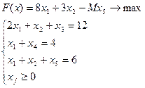 Найдем оптимальное решение этой задачи методом искусственного базиса. Для этого строим расширенную задачу: