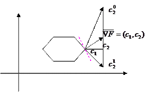 Влияние изменения коэффициентов критерия на оптимальное решение задачи хорошо видно на графике в пространстве двух управляемых параметров. Оптимальное решение не меняется, если вектор коэффициентов критерия (градиент функции) меняется в конусе градиентов активных ограничений.