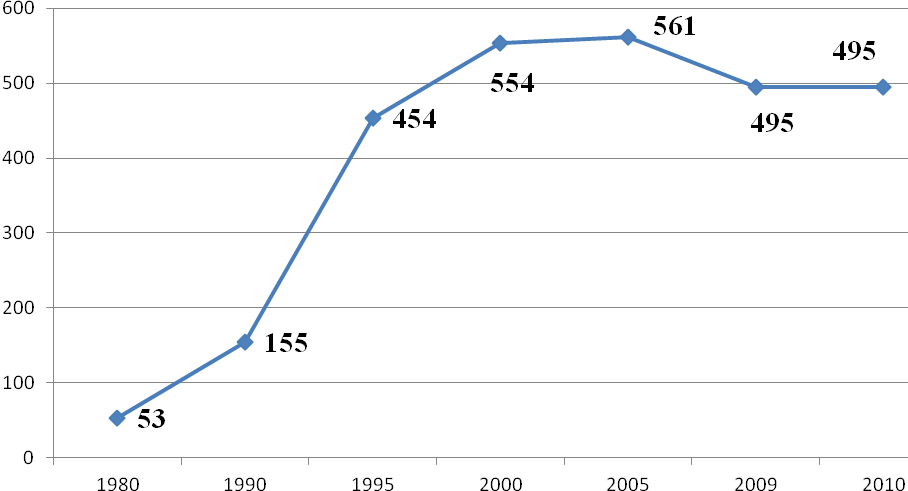В Оренбургской области по состоянию на 1 января 2012 года численность инвалидов равнялась 242 тыс. чел. Только за прошедшие 5 лет в Оренбуржье абсолютное число инвалидов выросло на 42 тыс. чел. Таким образом, доля инвалидов составила 4, 2% от всей популяции жителей Оренбургской области. Среди всех инвалидов доля лиц трудоспособного возраста составляла 64, 6% (58 518 чел.). В области проживает 7 513 детей-инвалидов, т.е. 1, 8% детской популяции и 3% от численности всех инвалидов области. В регионе отмечен рост численности лиц, впервые признанных инвалидами. Если в 1997 г. первичный «выход» на инвалидность имели 15037 чел., то к 2005 г. их стало 37 866 чел., т.е. в 2, 5 раза больше. При этом резкий скачок отмечен в области за один 2005 год, когда численность лиц, впервые признанных инвалидами, увеличилась сразу на 16 156 чел. Ситуация в настоящее время изменилась, так в 2009 г. впервые признано инвалидами 20 630 чел., а в 2010 г. уже 15 749 чел. Таким образом, за 5-летний период первичный «выход» на инвалидность сократился в 2, 4 раза. За десятилетие уровень первичной инвалидности взрослого населения Оренбургской области вырос более чем в 2 раза (с 89, 3 на 10 000 в 1997 г. до 192, 1 на 10000 в 2006 г.). И темп прироста этого показателя только за один (2005) год превысил 73%. Столь большой скачок первичной инвалидности взрослого населения, в первую очередь, объясняется вступлением в силу Федерального закона от 22 августа 2004 г. № 122, который «приравнял» инвалидов к категории граждан, имеющих право на получение набора социальных услуг. Однако в дальнейшем произошло снижение первичной инвалидности взрослого населения (с 225, 9 на 10 000 в 2005 г. до 92, 6 на 10 000 в 2010 г.). ).