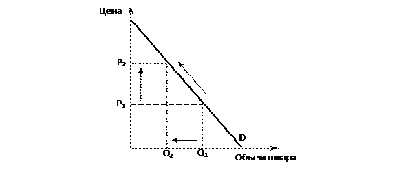 Сокращение спроса выражается в сдвиге кривой спроса влево и вниз. Сокращение спроса означает, что при той же цене потребители готовы приобрести меньше, а тот же объем продукции готовы приобрести за меньшую цену.