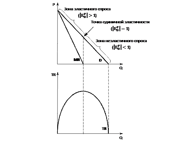 Рис. 2.4. Взаимосвязь эластичности спроса, общего и предельного дохода