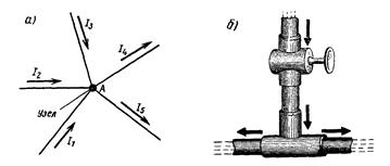 При этом э. д. с. E1 и ток I совпадают с выбранным направлением обхода контура и считаются положительными, а э. д. с. Е2, противоположная этому направлению, считается отрицательной. Если в электрической цепи э. д. с. источников электрической энергии при обходе соответствующего контура направлены навстречу друг другу (см. рис. 18, а), то такое включение называют встречным. В этом случае на основании второго закона Кирхгофа ток I = (Е1 - Е2)/(R1 + R2 + R01+R02). Если же э. д. с. источников электрической энергии имеют по контуру одинаковое направление (рис. 24, б), то такое включение называют согласным и ток I = (Е1 +Е2)/(R1 + R2 + R01+R02) В некоторых случаях такое включение недопустимо, так как ток в цепи резко возрастает. Если в электрической цепи имеются ответвления (рис. 18, в), то по отдельным ее участкам проходят различные токи I1 и I2. Согласно второму закону Кирхгофа (Е1 - Е2) = I1R01 + I1R1 - I2R2 -I2R02 - I2R3+ I1R4