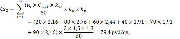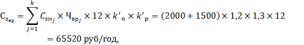 Часовая ставка 1-го разряда ( Тарифный коэффициент соответствующего разряда берется из таблицы 3: