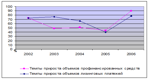 Рис. 4. Темпы роста объемов лизинговых платежей и профинансированных средств