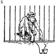 В. Келер предлагал своим обезьянам несколько задач, решение которых было возможно только при использовании орудий, т.е. посторонних предметов, расширяющих физические возможности животного, в частности «компенсирующих» недостаточную длину конечностей (см. рис. 4.1). Подтягивание приманки за нити. В первом варианте задачи лежащую за решеткой приманку можно было получить, подтягивая за привязанные к ней нити (рис. 4.2А). Эта задача, как выяснилось впослед-