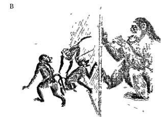 Рис. 4.4. Гортла выталкивает палкой плод из трубы (опыт Р Йеркса)