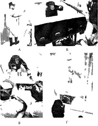 Вполне очевидно, что для анализа предыстории человеческого сознания наиболее интересны наблюдения и результаты исследований, проведенных с человекообразными обезьянами. В то же время представлялось необходимым выяснить, есть ли элементы самоузнавания у животных других видов, прежде всего у тех, кто имеет сложный высокодифференцированный мозг. Об этом известно гораздо меньше, однако, по-видимому, большинство из изученных видов (рыбы, морские львы, собаки, кошки, слоны и попугаи) оказались не способными узнавать себя в зеркале (Povinelly et al., 1993). Эти животные, как правило, реагируют на свое отражение как на другое животное. Характер их реакции зависит от ситуации и настроения. В одних случаях они нападают на отражение, принимая его за соперника. Так ведут себя многие виды рыб, которые сражаются с воображаемым конкурентом. Другие животные, наоборот, начинают «ухаживать» за отражением. Именно так поступают волнистые попугайчики, которым обычно помещают в клетку зеркальце: они воспринимают отражение как сородича, за которым можно ухаживать. Выпущенная полетать, такая птица проводит массу времени около зеркала и исправно «кормит» свое отражение. Попугаи-жако характеризуются более высоким уровнем структурно-функциональной организации мозга, чем волнистые, а также развитой способностью к обобщению и адекватному использованию символов (см. гл. 6). И. Пепперберг и ее коллеги подробно исследовали обращение с зеркалом у двух молодых (7, 5 и 11 месяцев) жако (Pepperberg et al., 1995). Птицы были выращены в неволе и свое зеркальное отражение могли видеть, лишь когда в раковине в лаборатории собиралась вода. Как и многие другие животные, они реагировали на свое отражение в зеркале хдк на другую особь и в ее поисках, например, заглядывали за зеркало. Зачастую они взъерошивали и чистили перья: такое поведение часто провоцируется простым присутствием другой особи. Неоднократно было замечено, как одна из птиц (самка Ало) располагалась перед зеркалом таким образом, чтобы одновременно видеть и свою ногу, и ее отражение. Вторая птица, самец Кьяро, обращался к зеркалу со словами «you come», «you climb», видимо, адресованными «другому попугаю». И. Пепперберг считает, что неоспоримых свидетельств наличия у жако самоузнавания эти эксперименты не дают, хотя отдельные наблюдения позволяют предположить существование у них такой способности. Более определенный ответ на этот принципиально важный вопрос, по-видимому, могли бы дать опыты на взрослых попугаях, но это пока дело будущего. В этих экспериментах было четко показано, что попугаи-жако способны использовать информацию, полученную с помощью зеркала, для поиска приманки. Такую приманку (обычно привлекательную игрушку, реже пищу) прятали в картонную коробку, открытую с одной стороны так, что она была видна только в зеркале. Оказалось, что увидев отражение в зеркале, обе птицы успешно обнаруживали и вытаскивали спрятанные предметы. У птиц других отрядов способность к самоузнаванию практически не исследовали (это вопрос будущего), однако отдельные наблюдения позволяют ждать интересных результатов. Например, Е. П. Виноградова (Санкт-Петербург) рассказывает, что выкормленный ею слеток серой вороны считал зеркало своим лучшим развлечением и активно его требовал. Однажды хозяйка прикрепила ему на голову несколько кусочков бу
