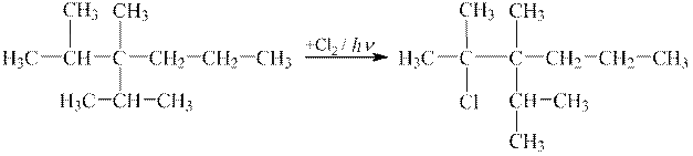 2 етап. Складаючи схему реакції цього вуглеводню з хлором, необхідно пам’ятати, що для алканів характерними є реакції заміщення, причому, якщо у реакції бере участь розгалужена молекула, то заміщення Гідрогену легше відбуватиметься за третинного атому Карбону ― за даного випадку це атом Карбону №2.