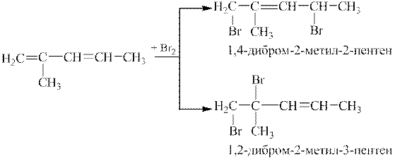 2 етап. Виходячи з того, що для спряжених дієнів більш характерним є 1, 4-приєднання, однак, можливим є і 1, 2-приєднання, запишемо схему реакції: