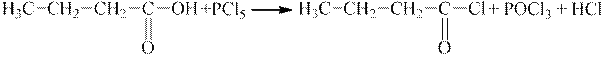 У реакції взаємодії кислоти з фосфор(V) хлоридом гідроксигрупа заміщується на галоген (атом хлору) з утворенням галогенангідриду: