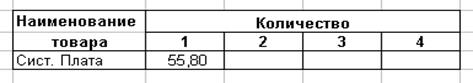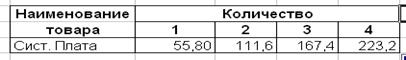 Ниже в интервале В8 – F8 оформите таблицу из первого задания: 1. ячейке С10 присвойте имя «цена»: o сделайте ячейку активной; o перейти в меню Вставка - Имя - Присвоить. o В открывшемся окне компьютер предлагает вам ввести имя ячейки. По умолчанию - текст из соседней ячейки (Сист_плата). o Удалим это имя и впишем Цена. ОК. o В адресном поле (поле имени) появилось Цена. o В ячейку D10 введем формулу =Цена*D9 o Скопируйте формулу вправо. o Получили результат.