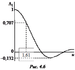 где , – лямбда-функция 1-го порядка [6]. При малых значениях угла и больших значениях параметра kR можно считать, что и зависимость при малых углах определяется в основном первым множителем в (4.4). Вид функции показан на рис. 4.6. Как видно, это осциллирующая функция, имеющая главный и ряд боковых лепестков. Ширина главного лепестка по уровню 0, 707