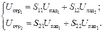 Основным элементом, на основе которого строятся многие типы волноводных полосовых фильтров, является объемный резонатор, образованный двумя плоскими неоднородностями, расположенными на расстоянии Электрические параметры резонатора удобно характеризовать параметрами рассеяния. При использовании концепции падающих и отраженных волн для четырехполюсника (а проходной объемный резонатор является двухплечим устройством – четырехполюсником) можно записать следующее (см. рис. 3.1):