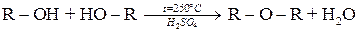 Заміщення гідроксилу на галоген відбувається і в умовах дії наступних сполук: Утворення етерів Утворення етерів (простих ефірів) відбувається за рахунок відщеплення молекули води від двох молекул спирту в умовах нагрівання і у присутності водовіднімаючих засобів: