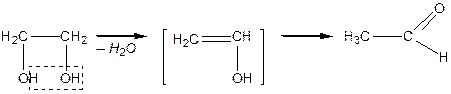Дегідратація спиртів залежить від будови гліколю та умов реакції: