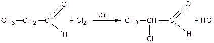 Оксими, гідразони або фенілгідразони гідролізуються водними розчинами кислот з утворенням вихідних сполук. При дії галоїдних сполук фосфору на оксосполуки атом Оксигену в оксогрупі заміщується двома атомами галогену: Реакції заміщення в радикалі Внаслідок поляризації оксогрупи атоми Гідрогену в молекулах альдегідів і кетонів, що знаходяться в α -положенні, стають рухливими і здатними до реакцій заміщення під дією галогенів: