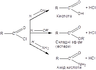 Галогенангідридам характерна висока реакційна здатність. Їх використовують для реакцій ацилування — введення радикалу кислоти із утворенням кислоти або похідних кислот: