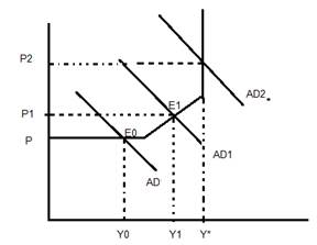 Пересечение кривых совокупного спроса и совокупного предложения определяет равновесный уровень цен и равновесный объем национального производства. Любой объем ВНП, при котором не достигается равенство совокупного спроса и совокупного предложения, свидетельствует либо о недопроизводстве (AD > AS), либо о перепроизводстве (AS > AD) и невозможности реализовать продукцию C + I + G + Xn = YE – условие достижения равновесия ВВП.