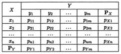 Для простоты ограничимся конечным множеством возможных значений, когда случайная величина X может принимать только значения х 1, ..., хп, Y − значения y 1, ..., yп. Такое перечисление удобно представить в виде таблицы. Используя табл., нетрудно определить совместную функцию распределения FX, Y (x, y). Ясно, что для этого необходимо просуммировать рij по всем тем значениям i и j, для которых xi < х, yj < у, т.е.