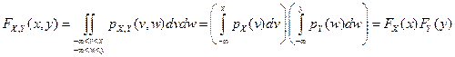 Доказательство. Пусть случайные величины X и Y независимые. Тогда, согласно определению, FX, Y (х, у) = FX (x) FY (y). С учетом свойств совместной плотности распределения имеем