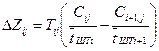 Общая величина изменения МОЗ на i -й паре смежных операций от момента начала периода оборота до момента окончания интервала определяется как сумма приращений по всем предшествующим интервалам плюс приращение на рассматриваемом интервале : .