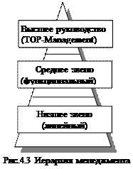 На верхнем уровне горизонтальные связи устанавливаются между TOP-менеджерами разных фирм. Физическое воплощение организационная структура менеджмента находит в схеме управления конкретной фирмой, отражающей её специфические особенности. Схема управления содержит состав подразделений и должностей их руководителей, порядок вхождения структурных подразделений и характер связей между ними, отражающих распределение и координацию задач, делегирование полномочий. [Содержание]