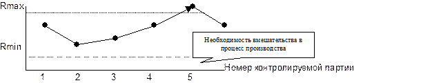 c). Контроль. Сопоставление достигнутых результатов с установленными стандартами. Очевидно, что для каждого стандарта необходимо установить масштаб (предел) допустимых отклонений. При нахождении значений показателей процесса в установленных пределах, процесс можно считать нормальным. Пример: Контроль качества с использованием контрольных карт.