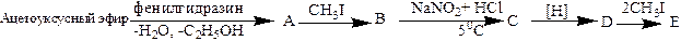 5. Имея γ -пиколин и необходимые неорганические вещества, синтезируйте гидразид изоникотиновой кислоты и введите его в реакцию 4-окси-4-метоксибензальдегидом. Каково практическое значение полученного вещества? 6. Какое соединение образуется, если фурфурол ввести в реакцию с ацетилнитратом, а затем полученное соединение нагреть с семикарбазидом. Как называется полученное вещество и какой фармакологической активностью обладает? 7. Имея пиридин, бензол и необходимые неорганические соединения, синтезируйте α -пиридиламид сульфаниловой кислоты (сульфидин). К какой группе лекарственных веществ относится сульфидин и каков механизм действия препаратов этой группы. 8. Приведите схему синтеза веронала (5, 5-диэтилбарбитуровой кислоты), исходя из малонового эфира и необходимых веществ. Каково практическое значение этого соединения? 9. Приведите схему синтеза фенобарбитала (5-этил-5-фениолбарбитуровой кислоты), исходя из малонового эфира и необходимых веществ. Какова фармакологическая активность этого соединения? 10. Известно, что введение в гетероциклическую структуру антипирина диметиламиногруппы повышает биологическую активность. Предложите способ синтеза лекарственного препарата амидопирина. Каким действием обладает это лекарственное вещество? 11. Предложите схему синтеза дибазола из о-фенилендиамина и фенилуксусной кислоты. К какой группе лекарственных веществ относится этот препарат?