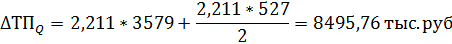 Оба фактора повлияли на прирост товарной продукции положительно. За счет изменения объема выпуска продукции переработки на 2, 211 тыс.ед. товарная продукция увеличилась на 8495, 76 тыс.руб. Это наибольший прирост. За счет увеличения цены на 527 руб. за единицу товарная продукция увеличилась на 3311, 4 тыс.руб.