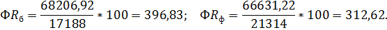 Согласно расчетам фондоотдача в отчетном году по сравнению с базовым уменьшилась на 0, 87 руб./руб. На это оказали влияния следующие факторы: производительность труда и фондовооруженность. За счет увеличения производительности труда на 23, 99% фондоотдача увеличилась на 3, 84 руб./руб., а за счет увеличения фондовооруженности на 31, 09% фондоотдача уменьшилась на 4, 71 руб./руб. Важнейшими показателями эффективности использования основных фондов являются: фондоотдача, фондоемкость (ФЕ), фондорентабельность (ФR).