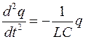 Исходя из того, что UC=q/C, а I=dq/dt, получаем дифференциальное уравнение свободных незатухающих гармонических колебаний величины заряда q на обкладках конденсатора:
