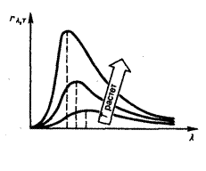 Согласно закону смещения Вина, зависимость длины волны lmax, соответствующей максимуму функции rl, T, от температуры имеет вид: Это выражение называют законом смещения Вина, так как оно показывает смещение положения максимума функции rl, T с изменением температуры Т.
