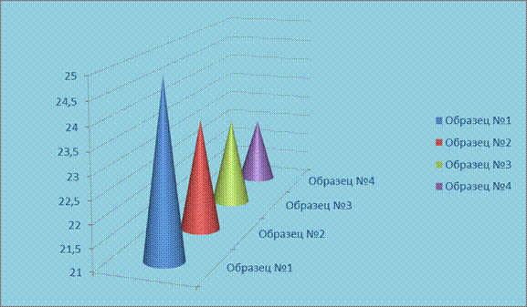Обработка результатов органолептического анализа голубцов по 5-балльной системе, которая отображена на рисунке 7, показывает, что образец №1: " Голубцы Фаршированные. Наша трапеза" занимает высший балл - 24, 9 по таким показателям качества, как цвет, запах, консистенция, вкус. Образец №2: " Голубцы сельские. Замороженные. Морозные припасы" занимает высший балл по таким показателям качества, как цвет, запах и консистенция, общий балл у образца №2 - 23, 5. Образец №3: " Голубцы замороженные. Сибирь Агро" имеет не совсем привлекательный внешний вид, тем самым по данному показателю качества получает балл - 3, 0, но по цвету, запаху, консистенции и вкусу образец №3 получает высший балл - 5, 0. Общий балл у образца №3 равен 23, 0. Образец №4: " Голубцы по-домашнему " Любони" занимает самое последнее место по показателям качества среди других образцов, тем самым ему присвоено 22, 5 балла.