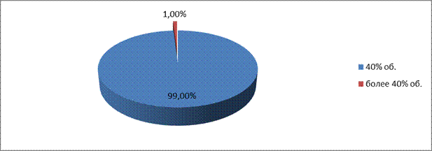 Рисунок 10. Структура торгового ассортимента коньяков в России по крепости Как видно из рисунка 10, систематизация торгового ассортимента коньяков по крепости напитка нецелесообразна, поскольку подавляющую часть торгового предложения, отражающуюся на показателях реализованного спроса на коньяк в условиях российского потребительского рынка, составляют коньяки 40%-ной крепостью.